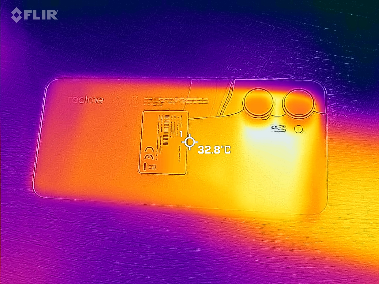 Als maximale Erwärmung bei längerer Last messen wir 43,6 °C, was deutlch spürbar, allerdings noch unproblematisch ist. Anders könnte es aussehen, wenn man das Phone an sehr heißen Tagen nutzt.