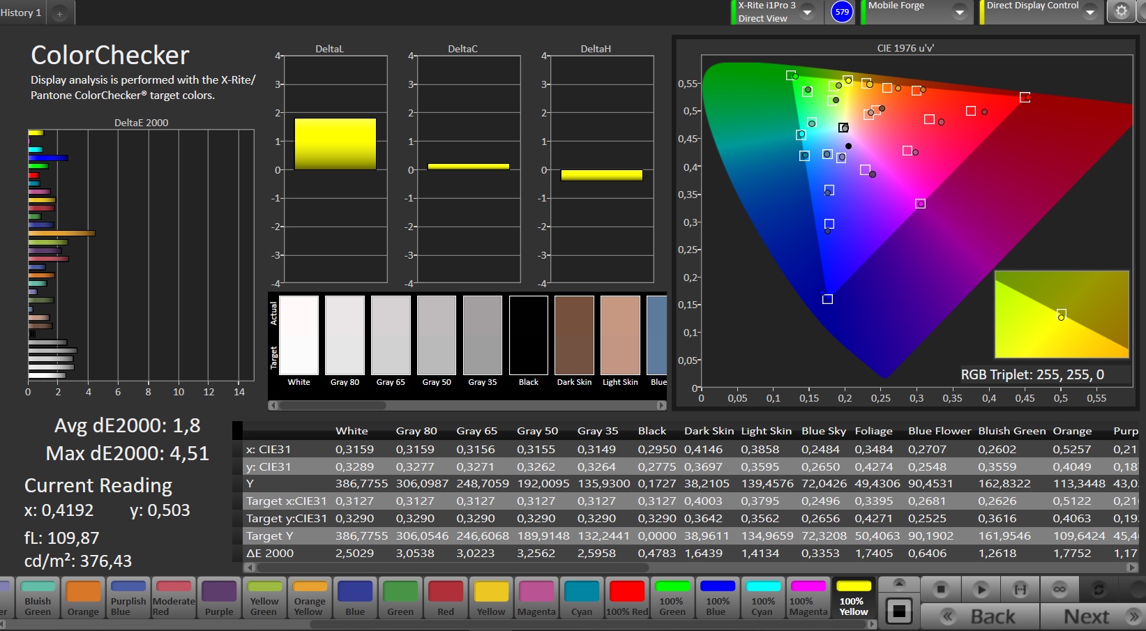 ΔE ColorChecker Calman: 1.8 | ∀{0.5-29.43 Ø4.78}
