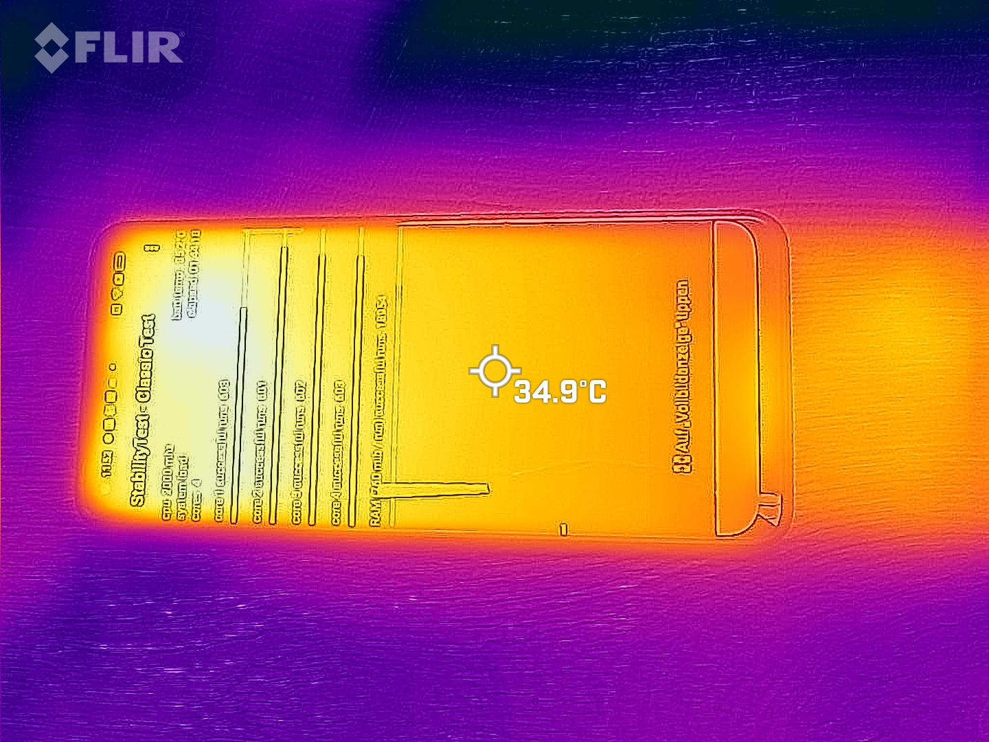 Die Temperaturen am Gehäuse des realme 9 Pro Plus können auf bis zu 44.5 °C bei längerer Last steigen. Das an sich ist noch nicht problematisch, an einem heißen Sommertag könnte die Erwärmung aber noch deutlich höher ausfallen und damit unangenehm werden.