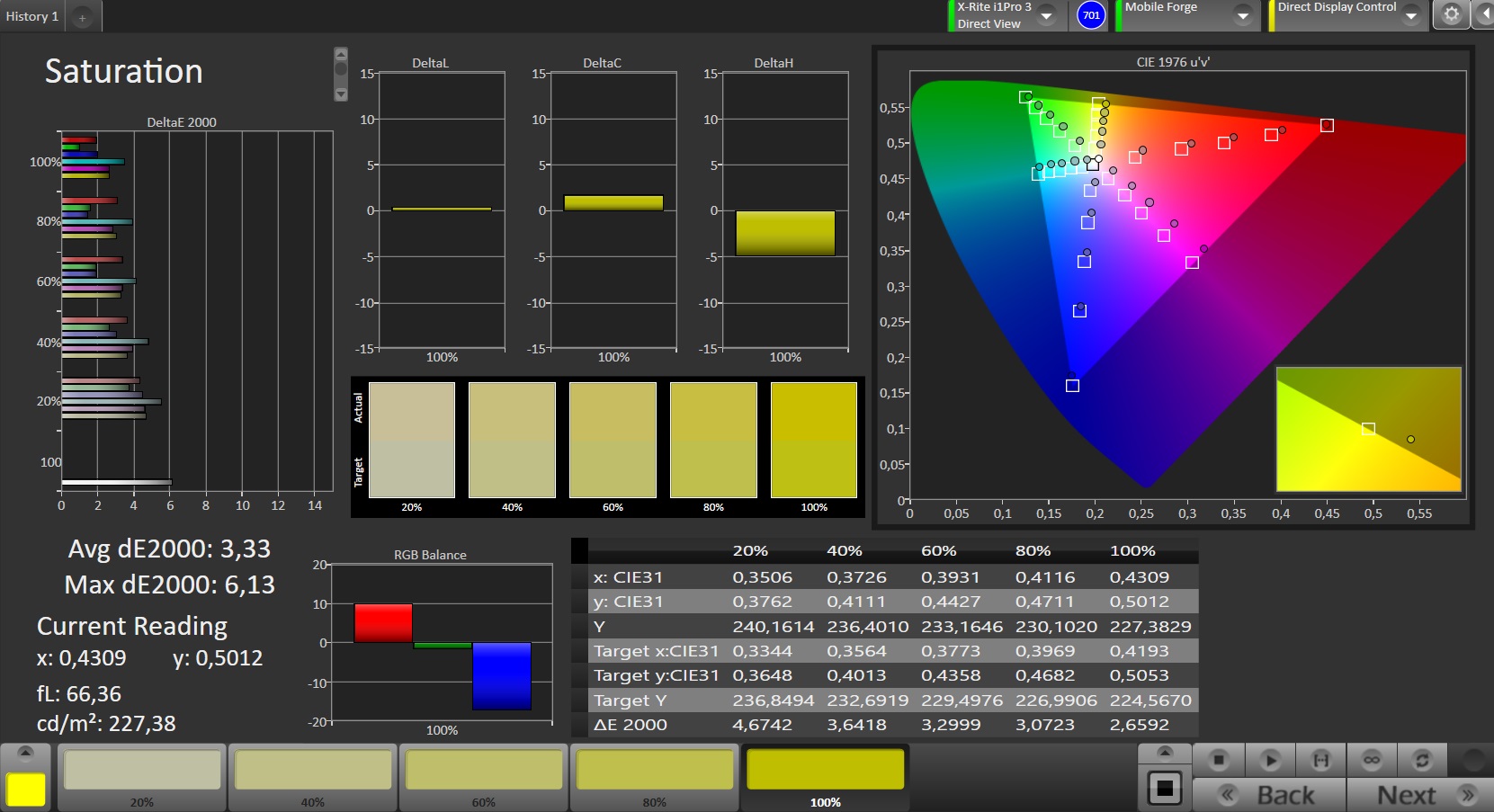 | Delta E Colorchecker * | 3.25 | 0.9 72% | 1.18 64% | 3.47 -7% | 0.95 71% | 3.5 -8% |