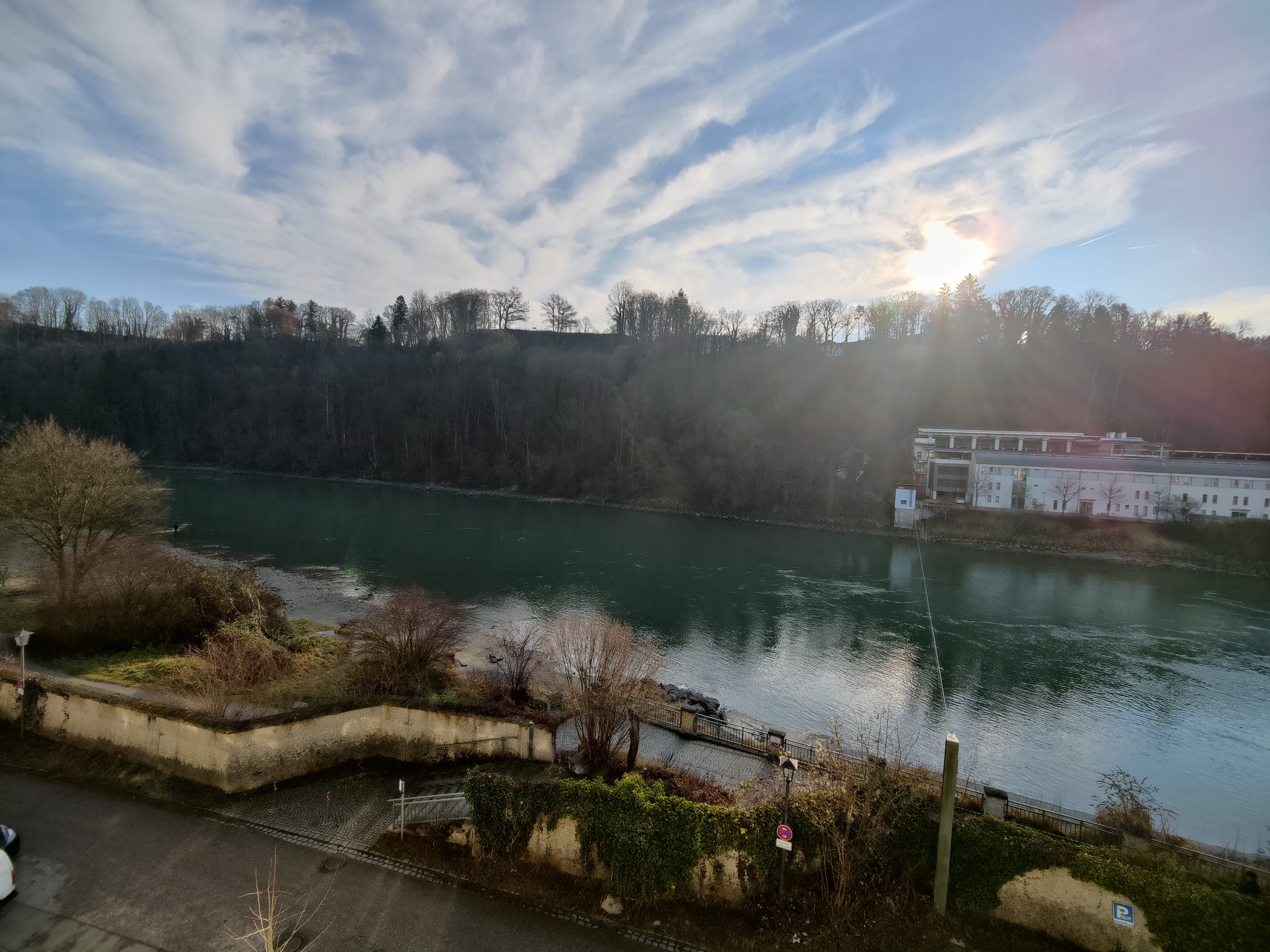 Besagtes Weitwinkelobjektiv bietet für Fotos 8 Megapixel, zwischen den beiden Linsen können Nutzerinnen und Nutzer im Fotomodus in mehreren Stufen zoomen. Bilder aus der zweiten Kamera wirken etwas detailarm und haben in unserem Beispiel auch mit der aufgehenden Sonne mehr Probleme als die Weitwinkel in High-End-Phones oder unsere Spiegelreflexkamera.