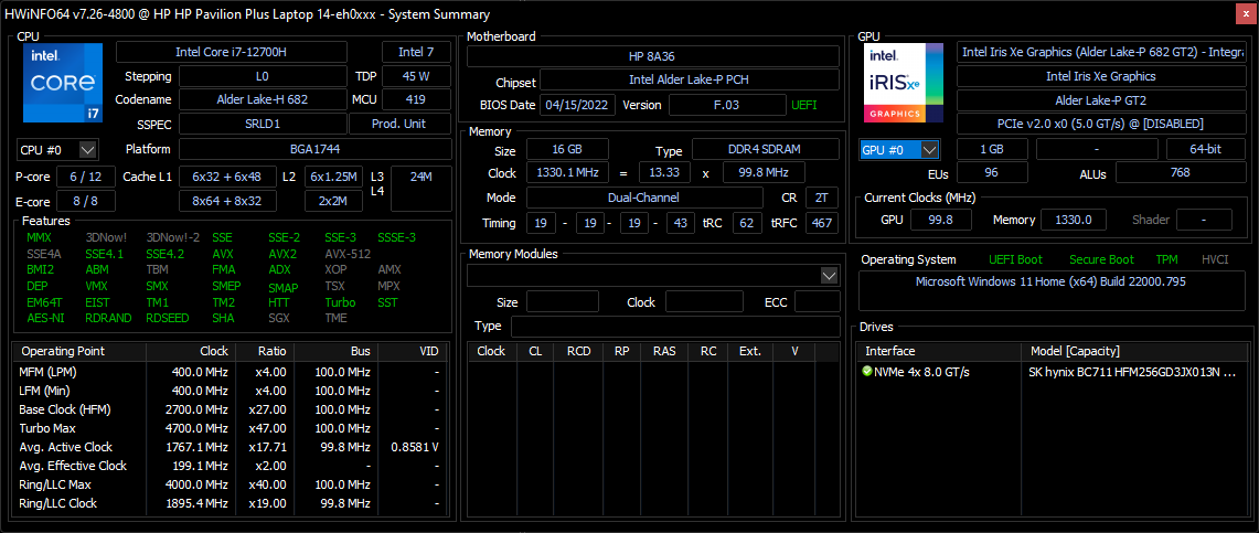 | Core i5-1240P | Core i5-1240P | Core i7-12700H | Core i7-1255U |