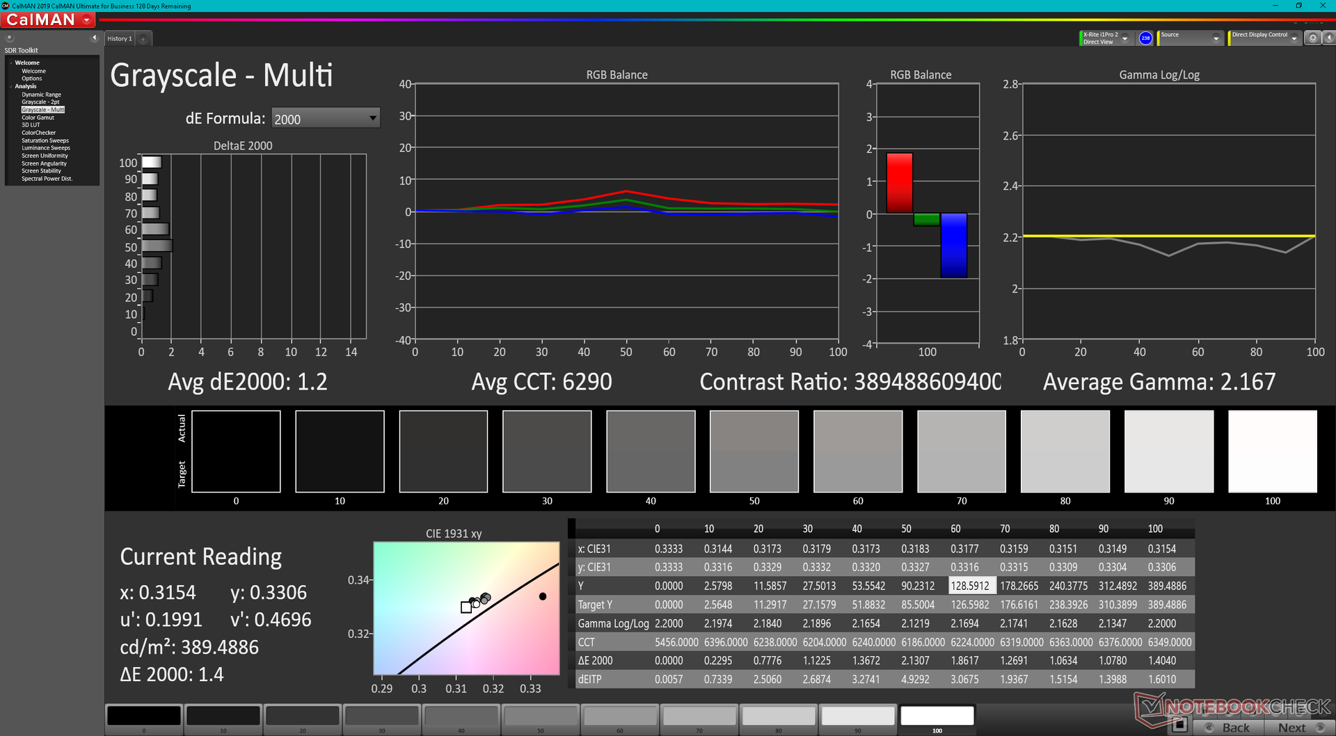 ΔE Greyscale Calman: 1.2 | ∀{0.09-98 Ø5}