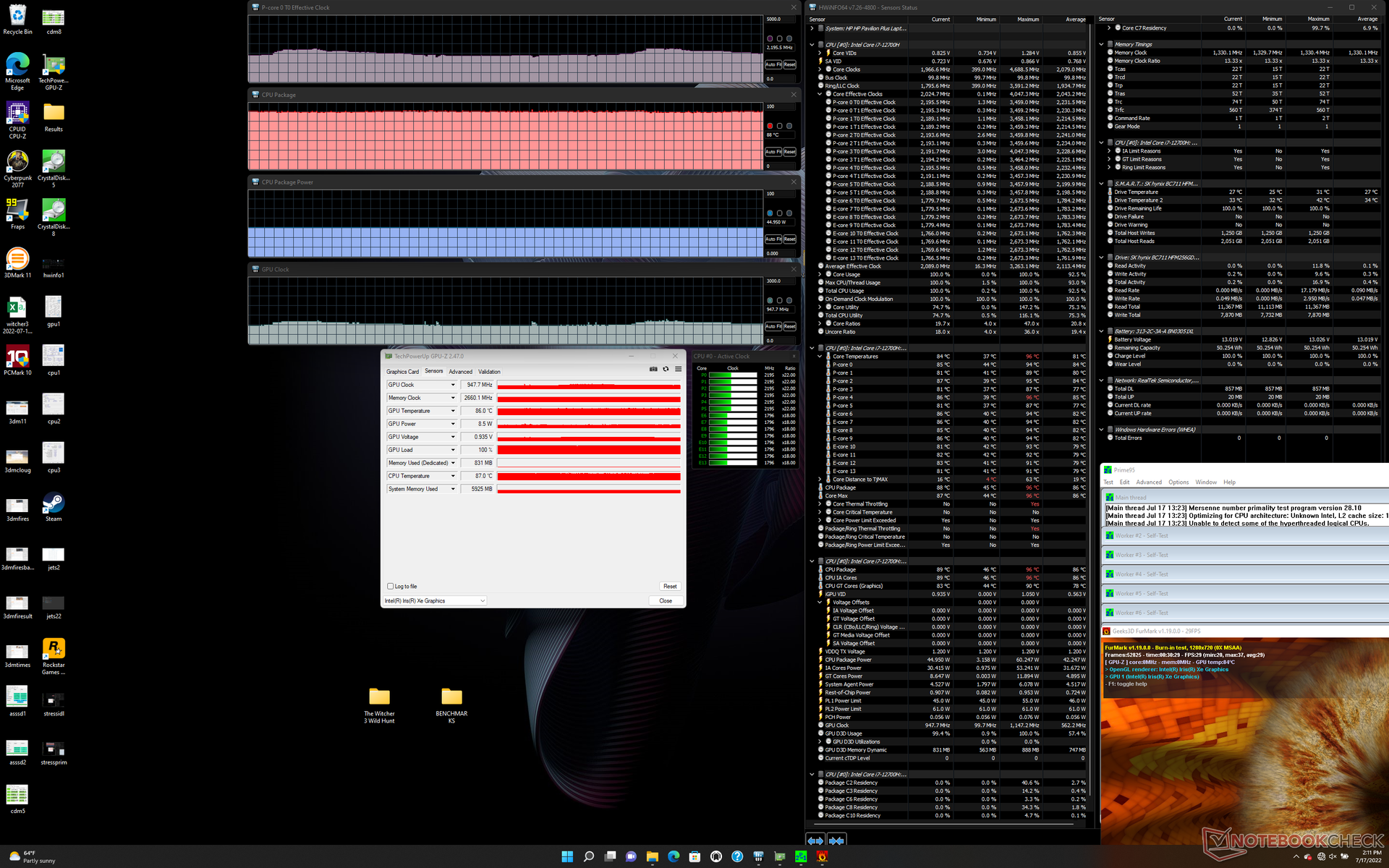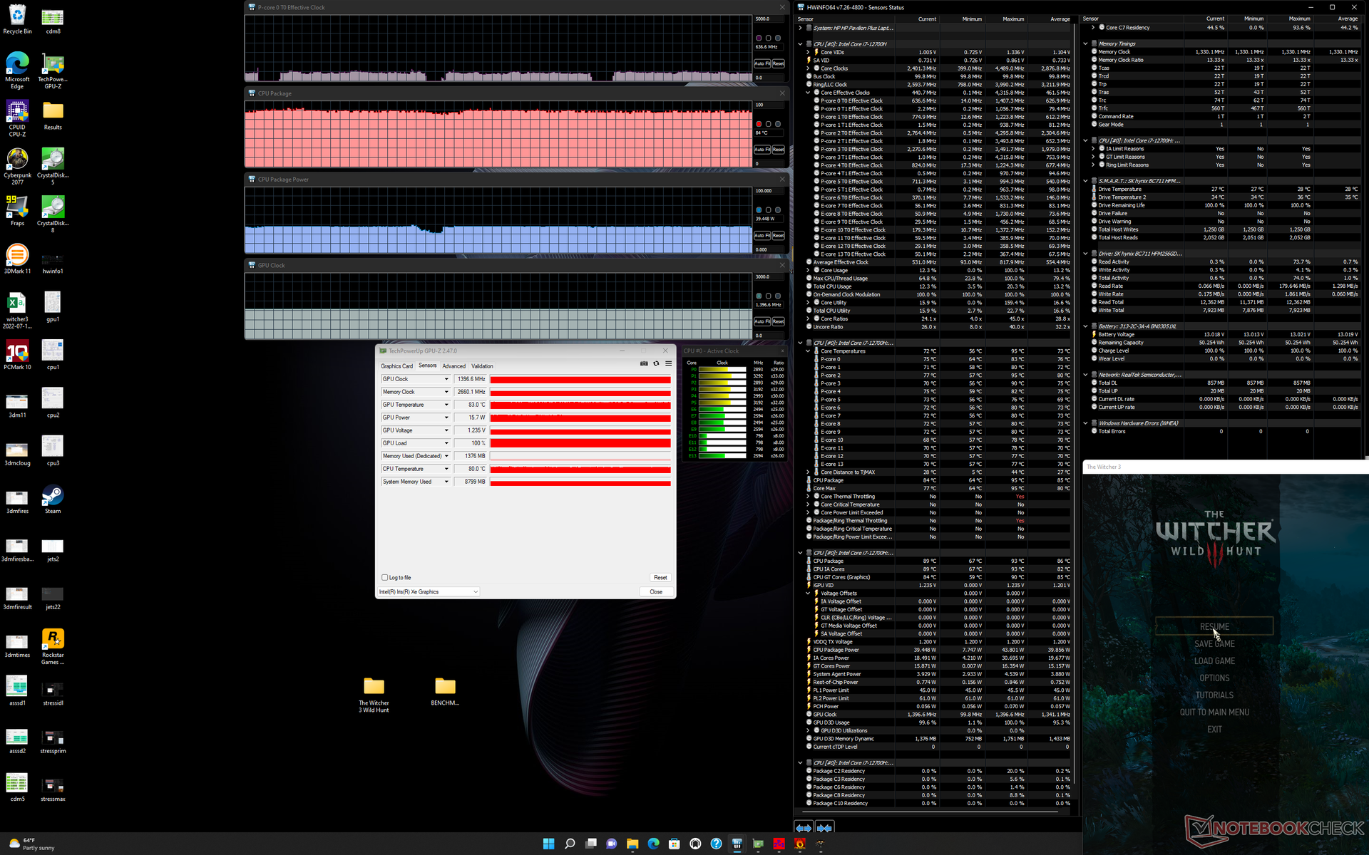 Wenn wir Witcher 3 im Performance-Modus laufen lassen, um eine hohe Belastung darzustellen, stabilisieren sich die GPU-Taktrate und die Temperatur bei 1397 MHz bzw. 84 °C, verglichen mit nur 1197 MHz und 80 °C im Balanced-Modus. Diese Kerntemperaturen sind wiederum wärmer, als wir von einem 14-Zoll-Laptop ohne diskrete Grafikkarte erwarten würden.