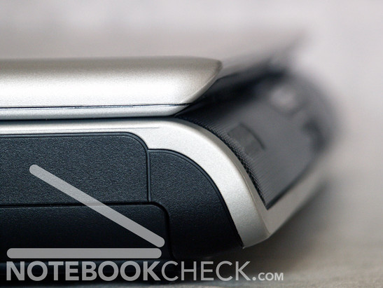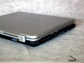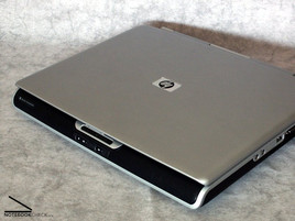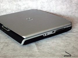 Bis auf den selten genutzten Firewire Anschluss bietet das HP zv6214 alle nützlichen Anschlüsse. Sogar ein, in dieser Preisklasse seltener, Anschluss für eine Dockingstation ist vorhanden. Die Steckverbindungen sind praktisch angeordnet und die Seitlichen sind auf der Gehäuseoberseite mit Icons beschriftet (sehr praktisch).