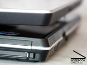 Das Display erwies sich als sehr verwindungssteif, misst aber auch 16mm an den Außenkanten. Leider lassen die Scharniere beim Testgerät ein leichtes Nachwippen des Displays zu.