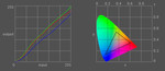 Das Diagramm der Farbwiedergabe zeigt einen guten Verlauf der Grün und Rot Kurve und die übliche Abweichung der Blaukurve. Dies resultiert in einer eher wärmlichen Farbdarstellung (Rot-Töne dominieren). Subjektiv wirkt das Bild dennoch sehr gut.