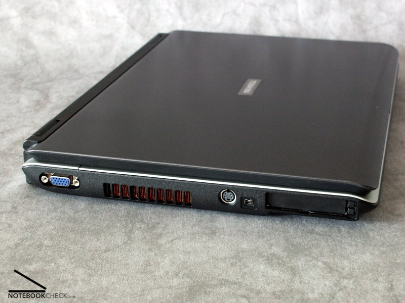 An der Hinterseite des Notebooks befindet sich eine Aussparung für einen Parallelport, welcher jedoch bei unserem Testgerät nicht verbaut wurde.