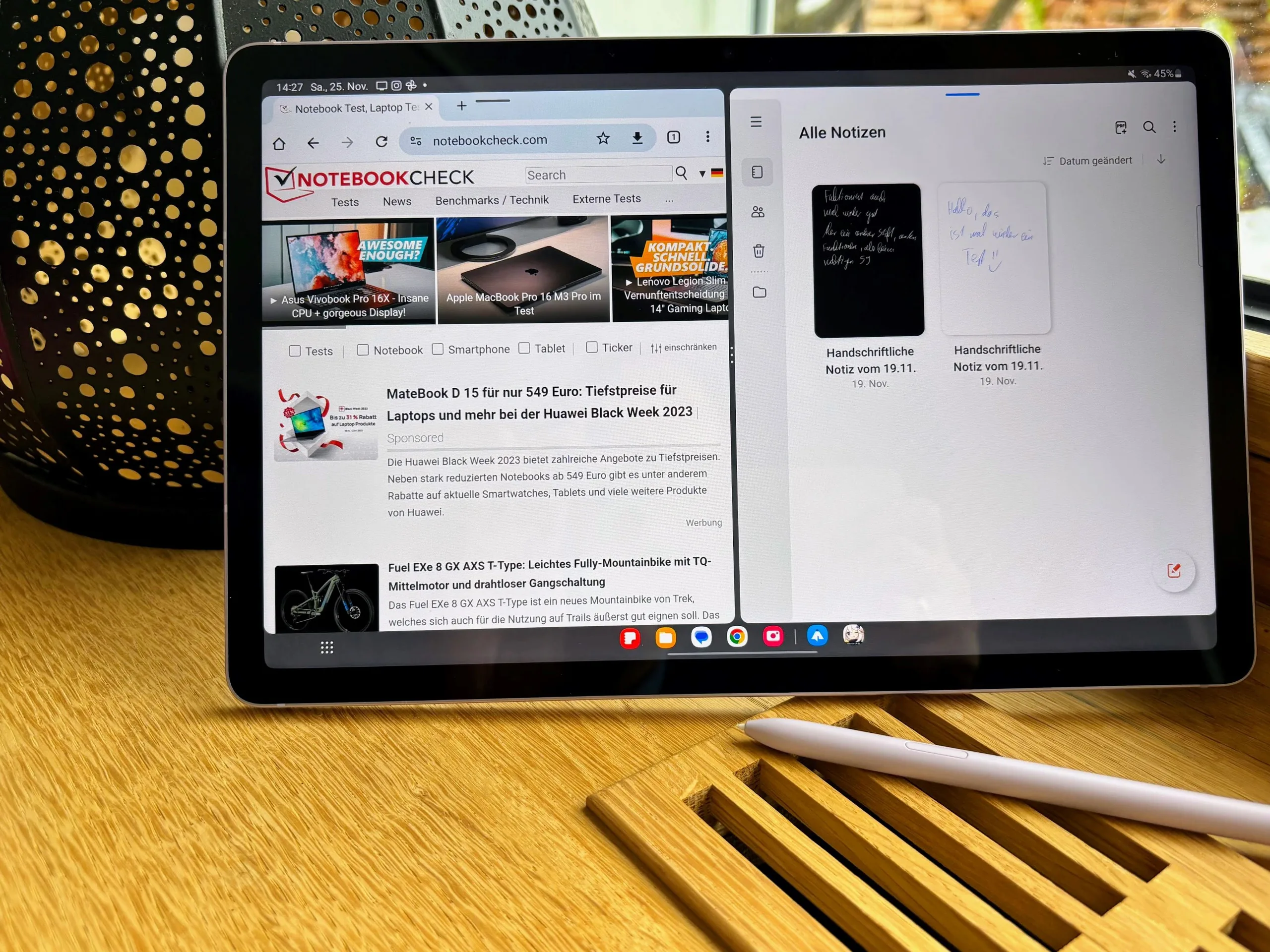 Das größte Downgrade gegenüber dem regulären Galaxy Tab S9 ist der verbaute Prozessor. Samsung setzt auf einen Exynos 1380 statt des Snapdragon 8 Gen 2. Das wird einerseits in Benchmarks und beim Spielen deutlich, aber teils auch im Alltag. Einige geöffnete Chrome-Tabs können das Tablet bereits an seine Grenzen bringen. Auch der langsame verbaute Speicher trägt seinen Teil zur schwächeren System-Performance bei.