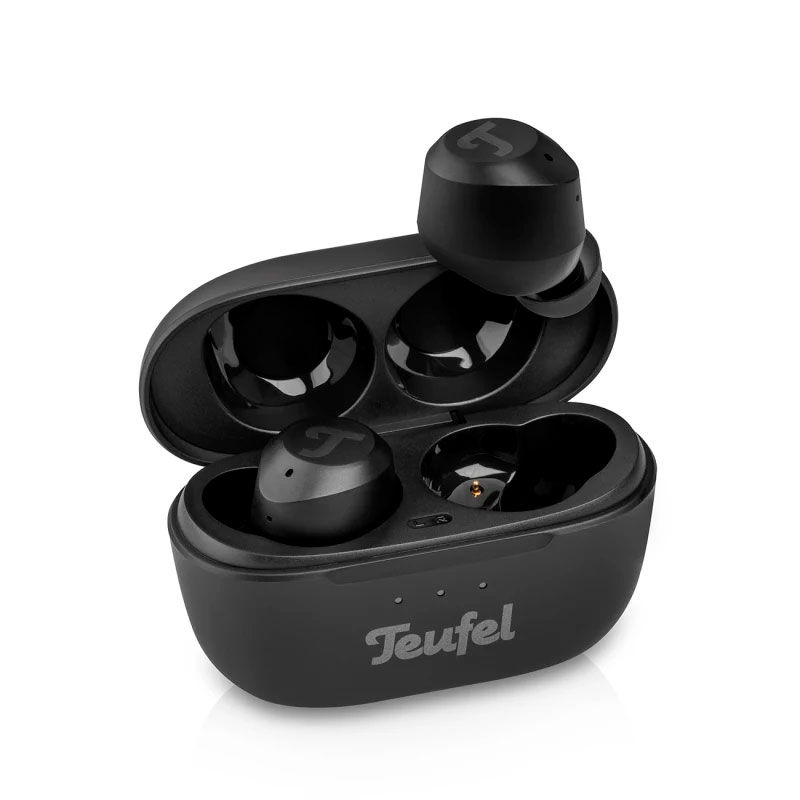 Der in den nach IPX3 spritzwassergeschützten Ohrhörern verbaute Akku ermöglicht laut Teufel eine Spielzeit von über 8 Stunden ohne ANC und über 6 Stunden mit eingeschaltetem ANC. Zum Lieferumfang der TWS Ohrstöpsel zählt das obligatorische Ladecase mit Ladestandsanzeige, mit dem sich die Gesamtdauer auf über 25 Stunden bzw. gut 18 Stunden strecken lässt.
