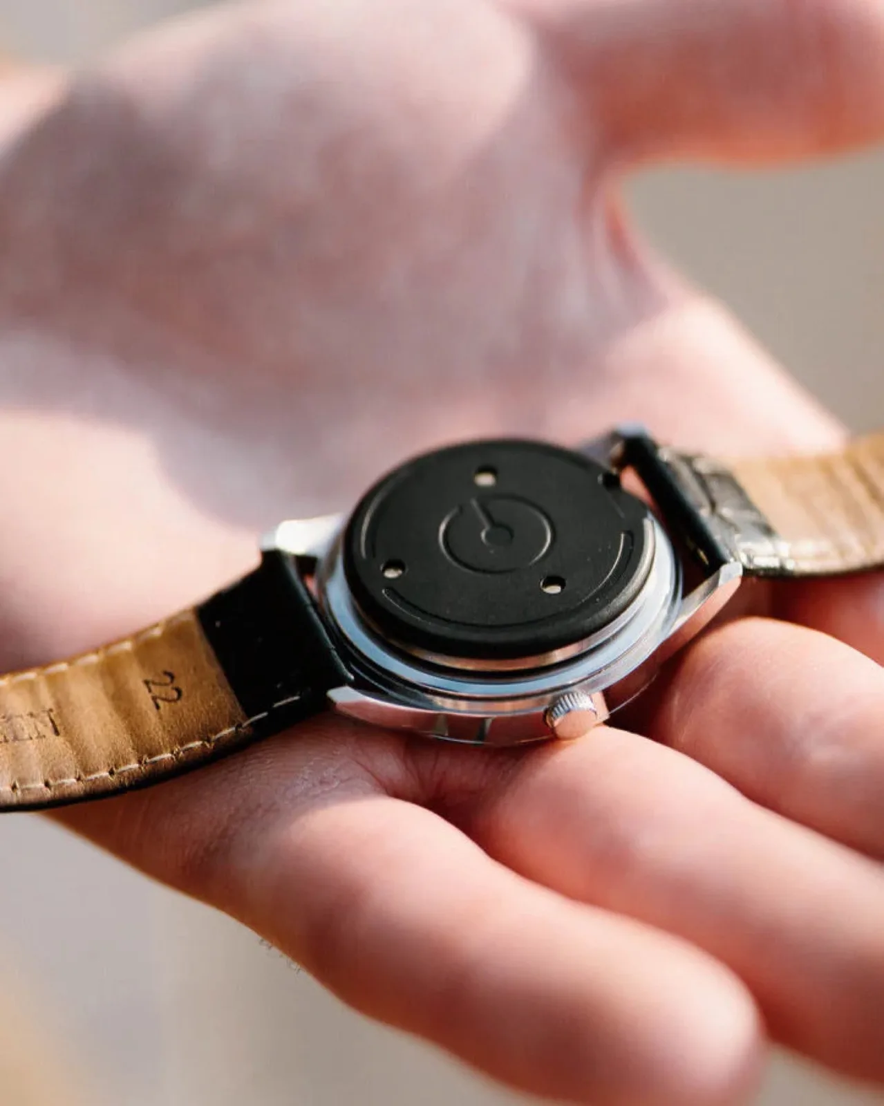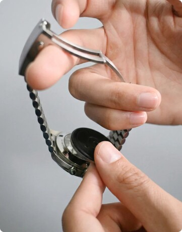 Mit The Heir bietet Ganance ein Gadget für all jene, die eine analoge Uhr bevorzugen, die aber nicht gänzlich auf die Funktionalität einer Smartwatch verzichten möchten. The Heir ist eine 3 Millimeter dicke, 5 Gramm schwere Scheibe mit einem Durchmesser von 30 Millimetern, die zur Nutzung einfach auf die Rückseite einer beliebigen Uhr wie etwa einer Casio 1302PD (ca. 50 Euro auf Amazon) geklebt wird.