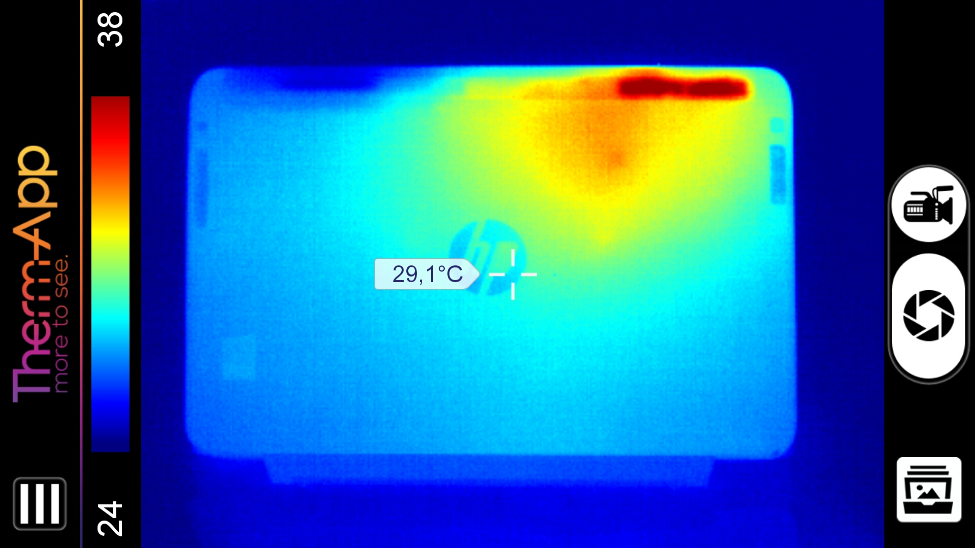 Erwartungsgemäß leidet die Bildqualität sichtbar unter der relativ niedrigen Sensorauflösung. Was bei der Aufnahme großer Objekte mit gleichmäßigem Temperaturgefälle nicht sonderlich ins Gewicht fällt, kann bei filigraneren Strukturen mit lokal begrenzten Hotspots – wie bei unserem Testobjekt, dem HP-Detachable Elite x2 1011 G1 – eine detaillierte Analyse erschweren. Auch der Dynamikumfang zeigt gewisse Schwächen, das heißt kleine Temperaturdifferenzen verschwimmen schnell. Dennoch: Für Standardanwendungen, wie die Suche nach Wärmebrücken an einem Haus, reicht das Gebotene allemal aus – und angesichts des aufgerufenen Preises kann sich die Qualität noch immer sehen lassen.