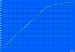 Ein kompletter Ladevorgang dauert bei eingeschaltetem Gerät ~135 Minuten. 80 % der Kapazität stehen aber schon nach etwa 74 Minuten wieder zur Verfügung.