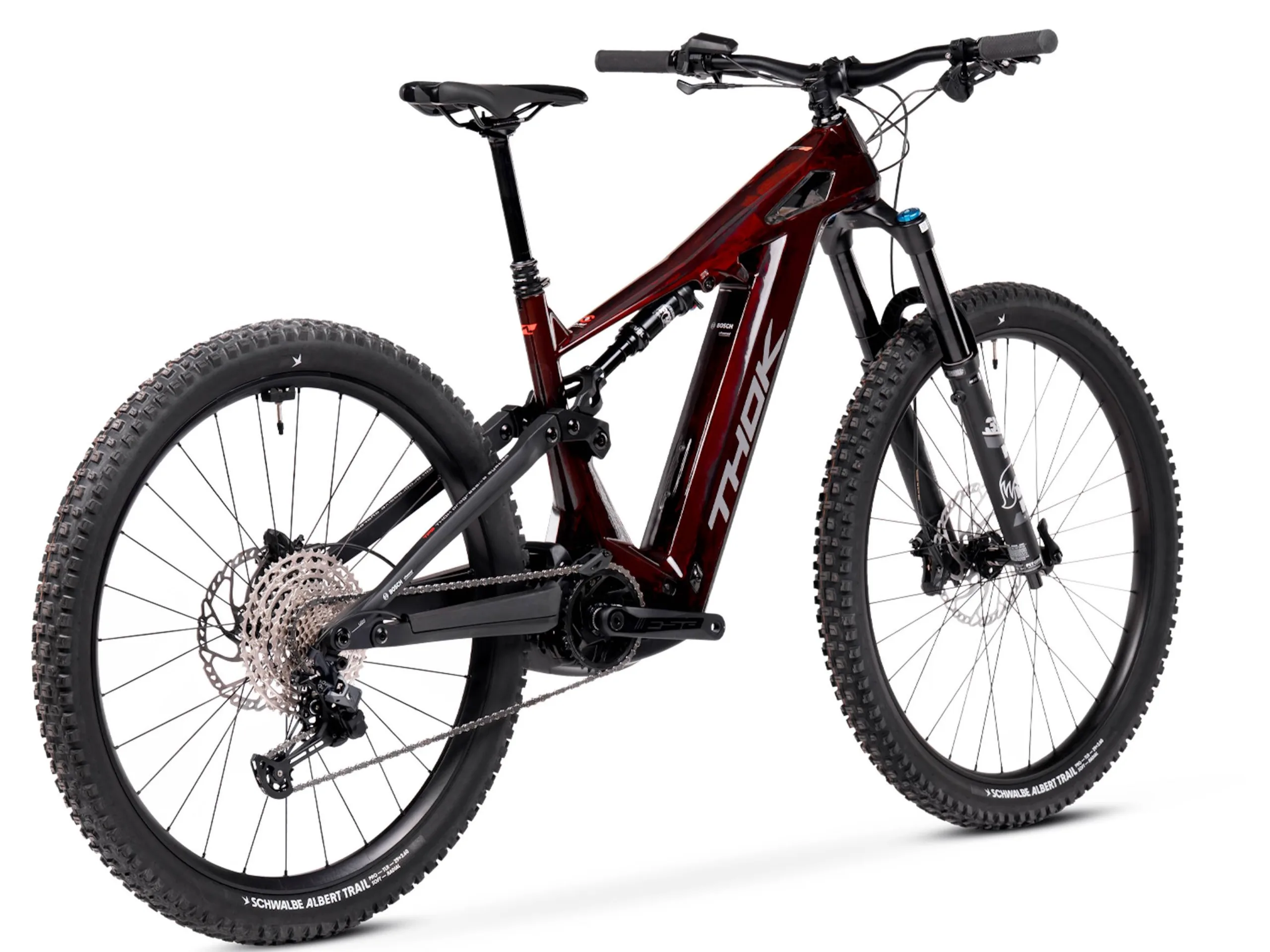 Ausgestattet ist das Fahrrad mit einem Bosch Performance Line CX-Mittelmotor und einem 800 Wh starken Akku, die maximale Leistung des BDU384Y-Motors wird mit 600 Watt angegeben. Verbaut ist ein Purion 200-Display. Es kann im Prinzip auch ein kleinerer Akku verwendet werden, dann sinkt das Gewicht von 24,3 Kilogramm auf 23,2 und 22,1 Kilogramm (600/400 Wh). Es kommt eine Shimano-Schaltung mit 12 Gängen zum Einsatz, die verstellbare Sattelstütze kommt mit einer Fernsteuerung. Aufgezogen sind Schwalbe Albert Trail Pro-Reifen, die Shimano Deore-Scheibenbremsen mit ihren jeweils vier Bremskolben versprechen eine starke Verzögerung. Mit der Flipchip-Technologie sollen sich Lenk- und Sitzrohrwinkel und die Tretlagerhöhe anpassen lassen.
