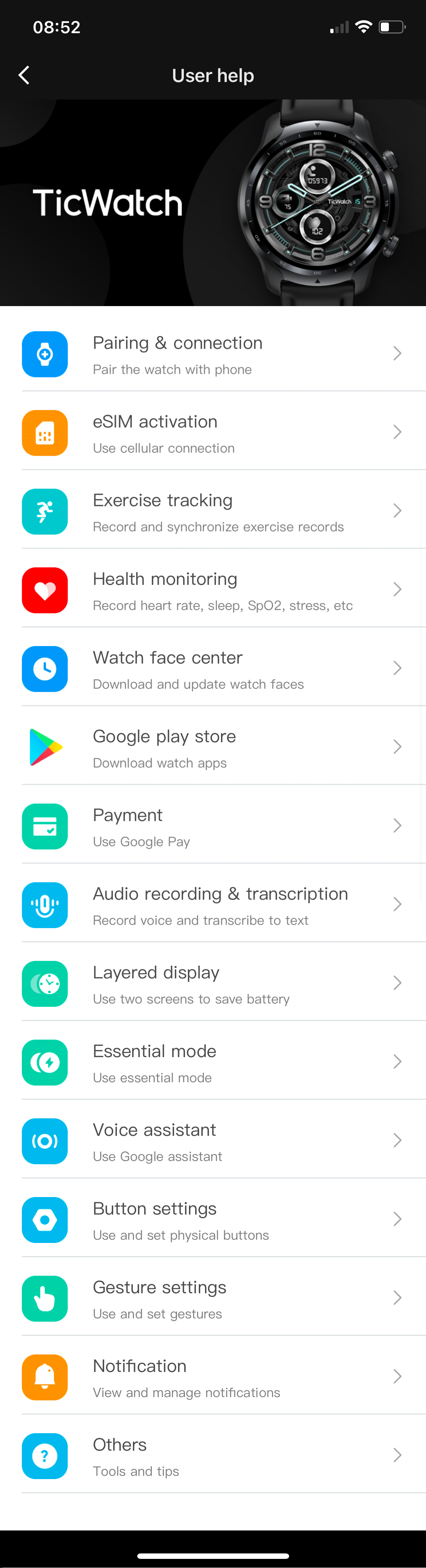 In beiden Stores gibt es zusätzlich eine App von Mobvoi. Sie bringt eine umfangreiche Anleitung mit, synchronisiert mit der TicWatch Pro 3 LTE erstellte Audionotizen und lädt weitere Zifferblätter aus dem Internet. Außerdem gehört zur Mobvoi-App ein Dashboard für die getrackten Daten; dazu mehr unter Gesundheit und Fitness.