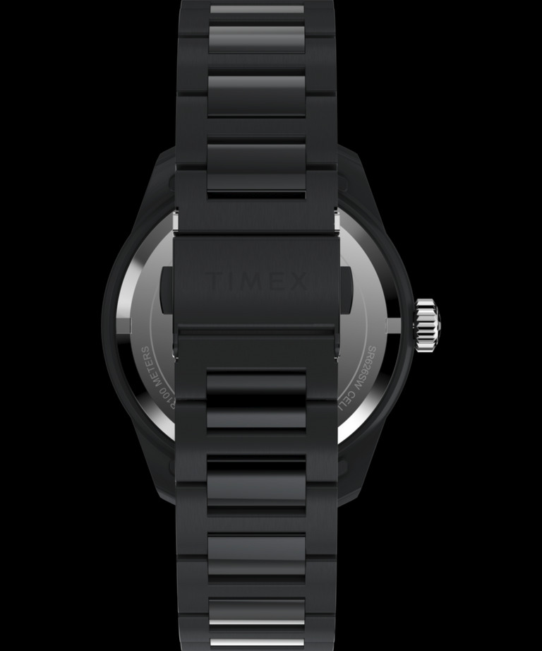 Angetrieben wird die Uhr von einem analogen Quarzwerk, das aufgrund seiner Genauigkeit und des geringen Wartungsaufwands gewählt wurde. Timex gibt als Energiequelle eine Standard-SR626SW-Batterie an. Dazu kommt ein passendes schwarzes Edelstahlarmband mit Faltschließe und einer Bandanstoßbreite von 20 mm. Ein Mineralglas schützt das Zifferblatt und bietet grundlegenden Schutz vor Kratzern.