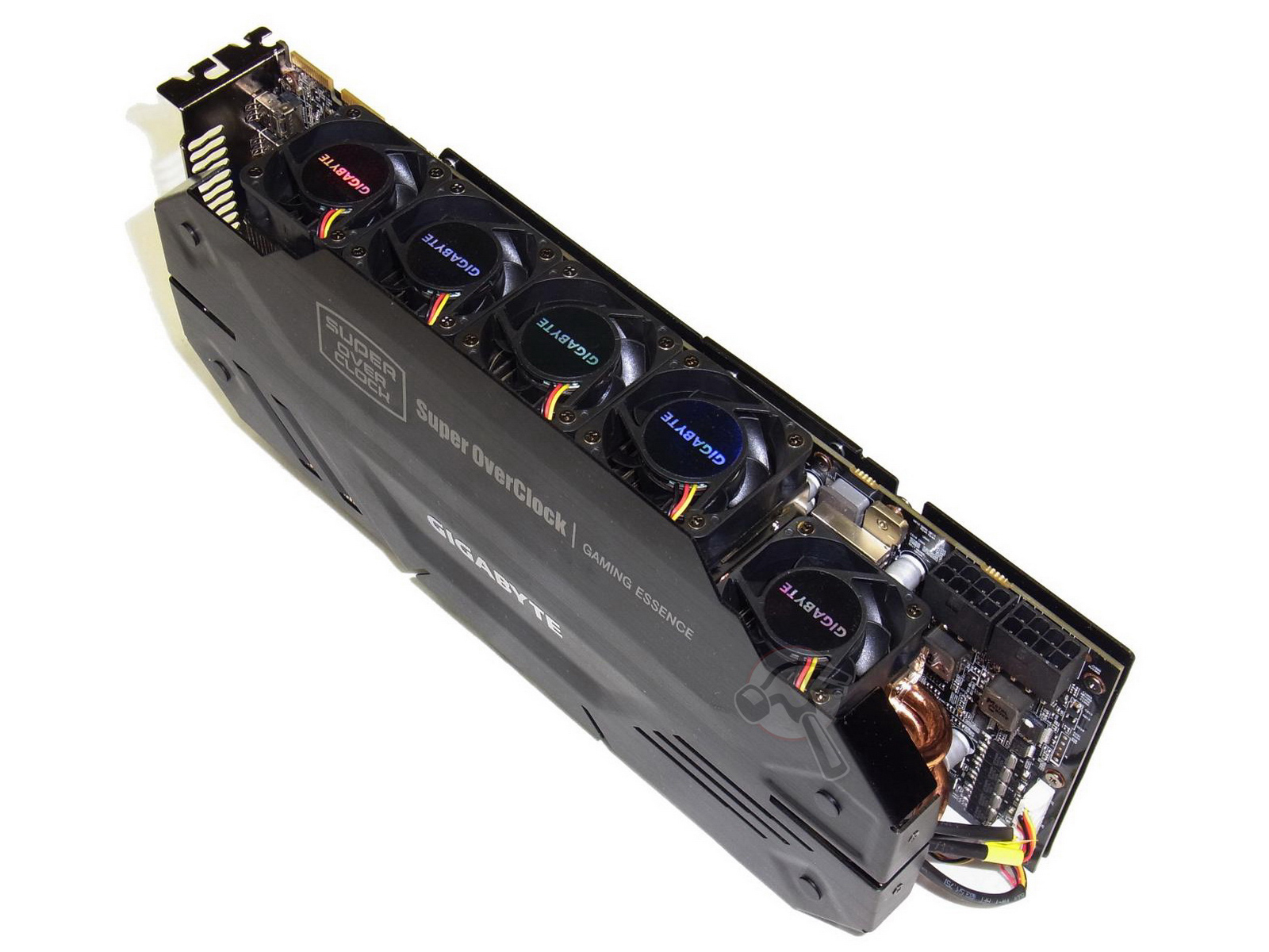 Wer selbst bei übertakteten Grafikkarten das Besondere sucht, der wird bei Gigabytes 7970 SOC Windforce 5X fündig. Die wuchtige 3-Slot-Grafikkarte entfesselt mit gleich 5 (!) drehfreudigen 4-cm-Propellern unter Volllast einen gewaltigen Sturm im Gaming-PC. Wird die Gigabyte 7970 SOC Windforce 5X gefordert, dann sorgt die Grafikkarte mit Motorsport-tauglichen bis zu 10.000 U/min pro Lüfter sowohl für eine höllische Geräuschkulisse als auch für brachiale Grafikleistung.
