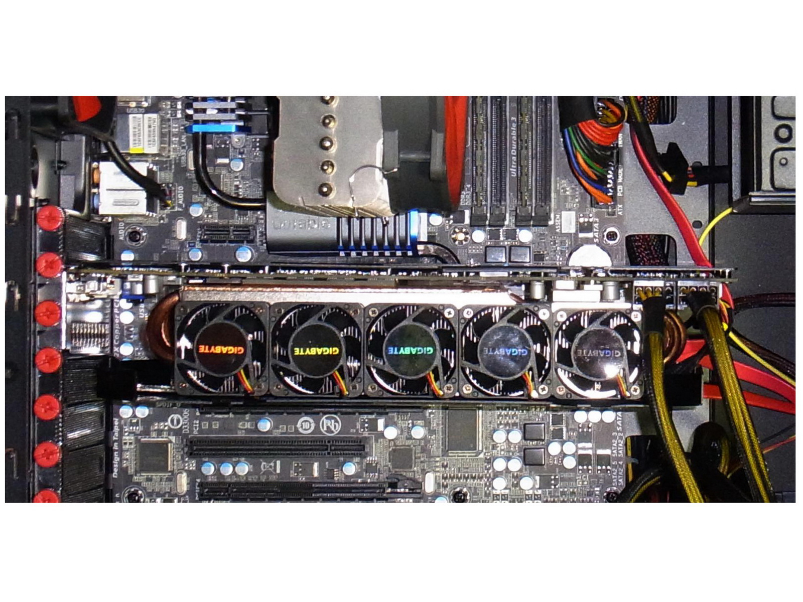 Was wir viel wichtiger finden als eventuelle Benchmarkwerte und Vergleiche mit anderen Karten, ist der Umstand, dass die hier vorgestellte neue Kühllösung das Innere des PCs trotz der hohen Leistungsaufnahme nicht mit Abwärme belastet. …
