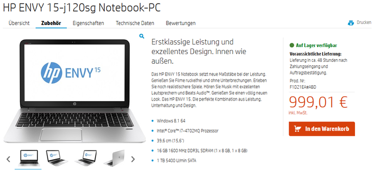 Hier geht's zu unserem Test - HP Store: HP Envy 15-j120sg (GT 750M 4GB DDR3) für 899,00 € (mit Gutscheincode: HP100E1ENVY)