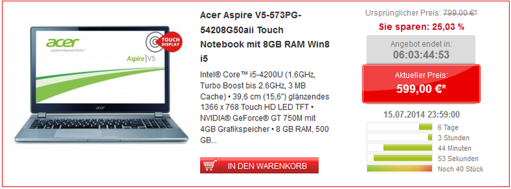 Hier geht's zu unserem Test - Comtech: Acer Aspire V5-573PG-54208G50aii für 599,00 €