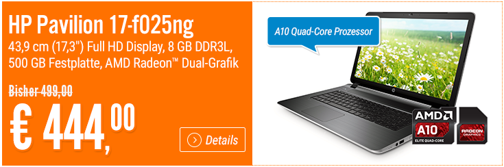 - Notebooksbilliger: HP Pavilion 17-f025ng für 444,00 €