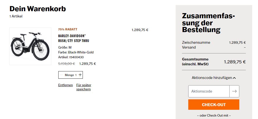 Aktuell sind mehrere E-Bikes von Harley-Davidson mit riesigen Rabatten erhältlich. Tatsächlich offeriert der Hersteller mit dem Gutscheincode FFSERIAL1 einen Rabatt von 75 Prozent. Kunden sollten trotzdem durchaus kritisch vergleichen, da sich Harley-Davidson allem Anschein nach auch den bekannten Markennamen durchaus gut bezahlen lässt. So wirken die Original-Preise von bis zu über 5.000 Euro durchaus ambitioniert.