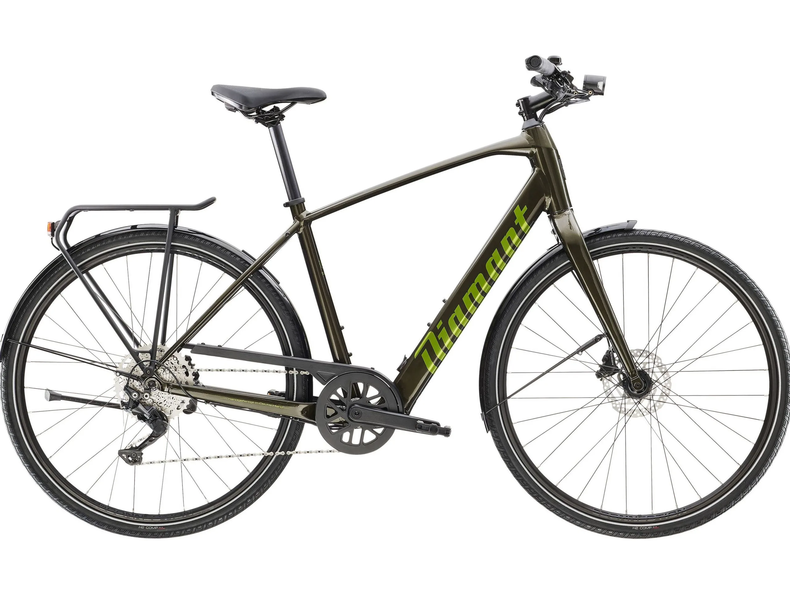 Verbaut ist eine Shimano Deore-Kettenschaltung, was die Abhängigkeit von der Motorunterstützung auch etwa an Anstiegen reduzieren dürfte. Das 17,2 Kilogramm schwere E-Bike kommt schon mit einer voll alltagstauglichen Ausstattung, so ist ein zum MIK-System kompatibler und mit bis zu 25 Kilogramm belastbarer Gepäckträger vorhanden, Ständer und SKS-Schutzbleche aus Kunststoffe sind ebenfalls vorhanden. Eine Beleuchtung steht bereit, hydraulische Scheibenbremsen sind verbaut. Auf eine Federung müssen Fahrer aber komplett verzichten.