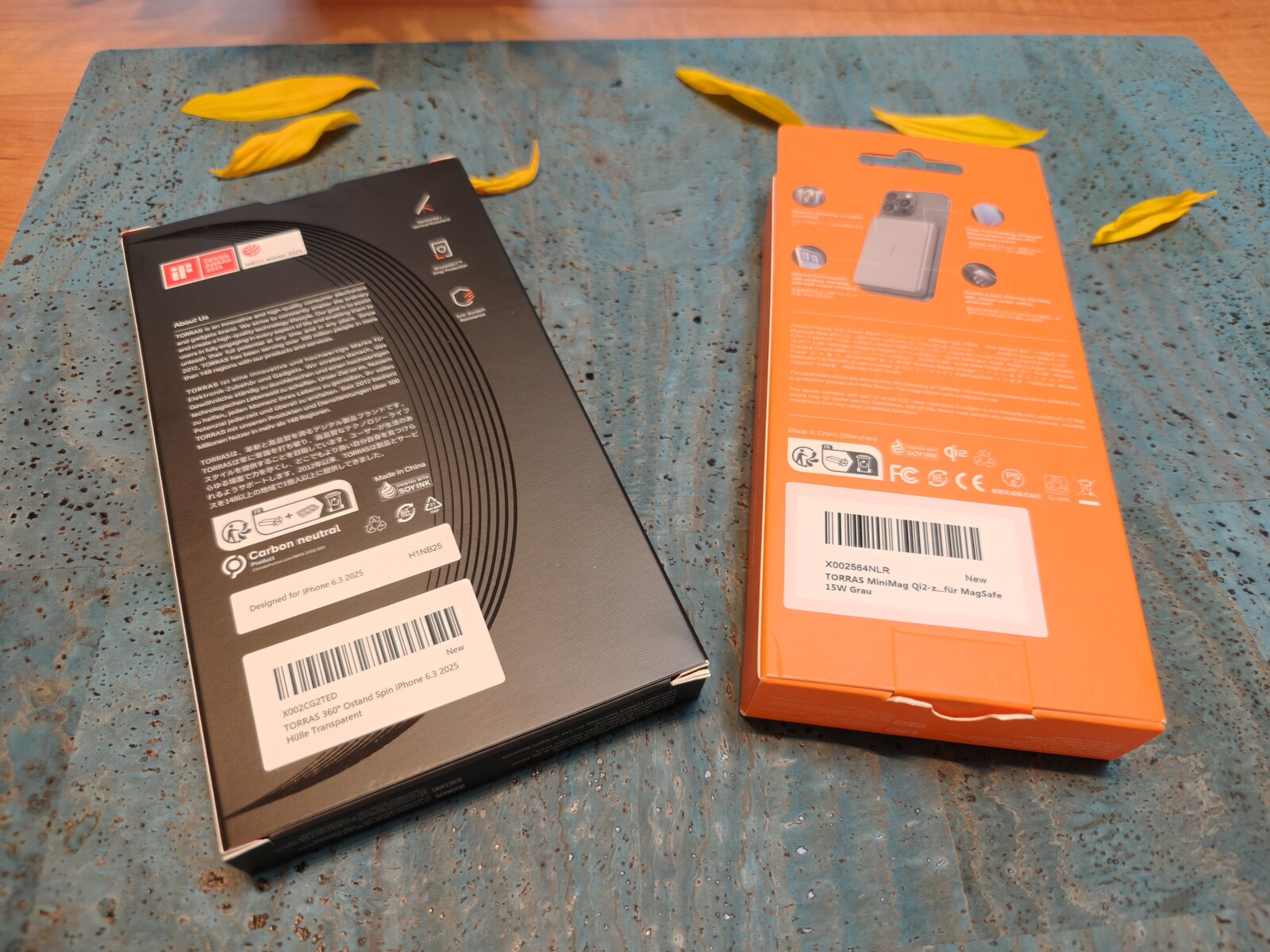 Die Handyhüllen und Powerbanks von Torras kommen in recht schlanken Verpackungen. Sie sind mit umweltfreundlicher Soja-Tinte bedruckt. Leider werden aber innen noch Kunststoffschalen und -folien verwendet.