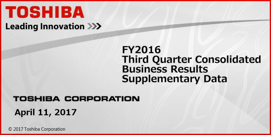 Droht Toshiba jetzt das endgültige Aus? Der Niedergang des japanischen Traditionsunternehmens und Weltkonzerns scheint sich nicht mehr aufhalten zu lassen. Mit den aktuell veröffentlichten Geschäftszahlen für das 3. Quartal im Fiskaljahr 2016 des Konzerns, das zum 32. März 2017 endete, legte Toshiba mit einem Verlust von 588,9 Milliarden Yen (5,06 Mrd. Euro) eine tiefrote Bilanz vor. Für den 9-monatigen Geschäftsbetrieb beziffert Toshiba den Verlust mit 552,4 Mrd. Yen.