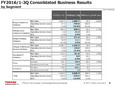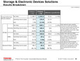 Für das Konzernsegment Storage und Electronic Devices Solutions verzeichnete Toshiba im Bereich Speicherbausteine und Festplatten (HDD) ein solides Wachstum und eine gute Erlössituation. Das Geschäftsfeld Personal Computer schrumpfte im Zuge des Rückzugs aus dem B2C-Geschäft in den USA und Europa weiter um 62 Prozent auf 140,5 Mrd. Yen.