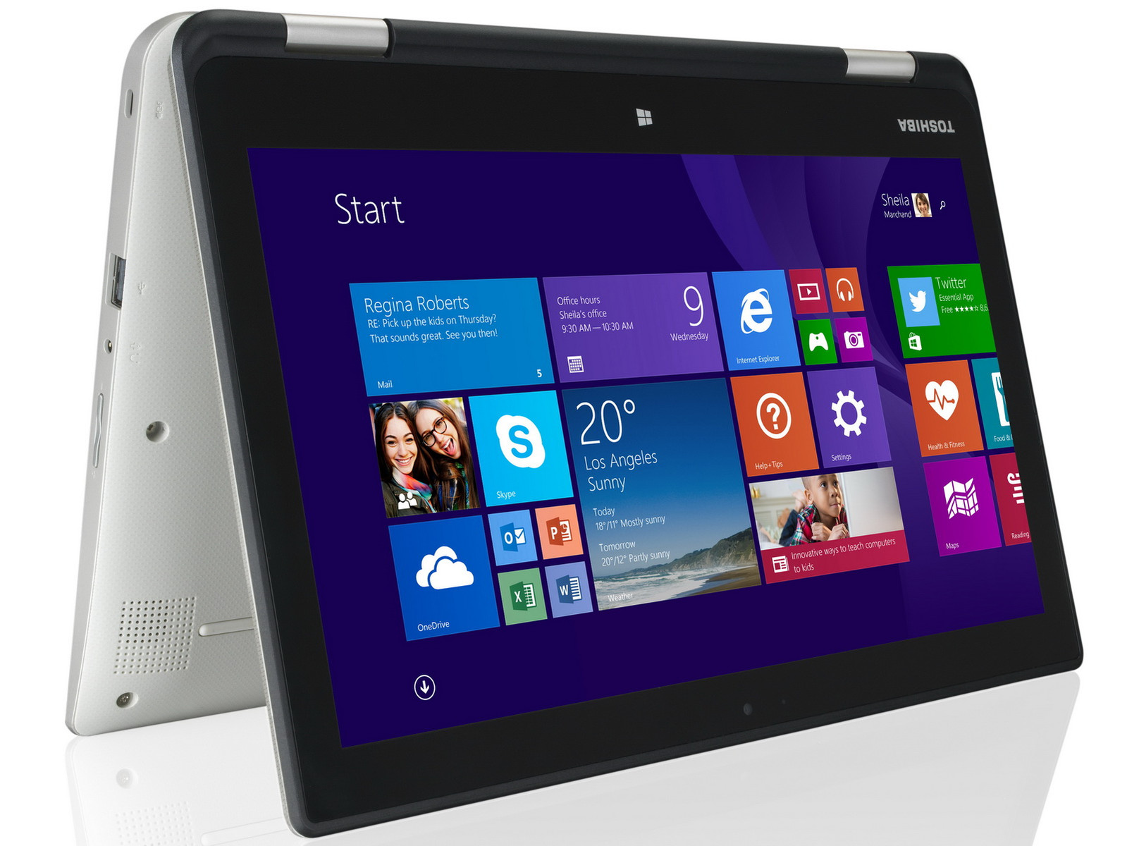 Das Satellite Radius 11 Convertible von Toshiba lässt sich in 5 verschiedenen Modi nutzen: Audience, Notebook, Präsentation, Tablet und als Tabletop. Vorgestellt hatte Toshiba das multifunktionale 11,6 Zoll Convertible mit HD-Touch-Display (10 Punkt) und einer Auflösung von 1366 x 768 Pixeln auf der IFA 2014. Jetzt ist das erste Modell als Satellite Radius 11 L10W-B-101 für 450 Euro im Handel verfügbar.