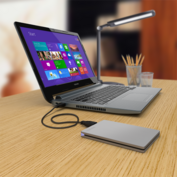 In Zeiten von schlanken Ultra-Thins und Subnotebooks sind passende Zubehörprodukte gefragt, denn wohl keiner möchte heute noch eine 500 oder gar 1000 Gramm schwere Festplatte mit sich herumtragen. Toshiba hat mit der Canvio Slim eine externe 2,5-Zoll-Festplatte vorgestellt, die in einem schlanken Chassis (9 Millimeter) 500 GByte zusätzliche Kapazität bereithält. Im Inneren werkelt eine 7-Millimeter-Festplatte mit 5400 Umdrehungen pro Minute. Diese Lösung ist aktuell in vielen Einsteiger-Ultrabooks zu finden.