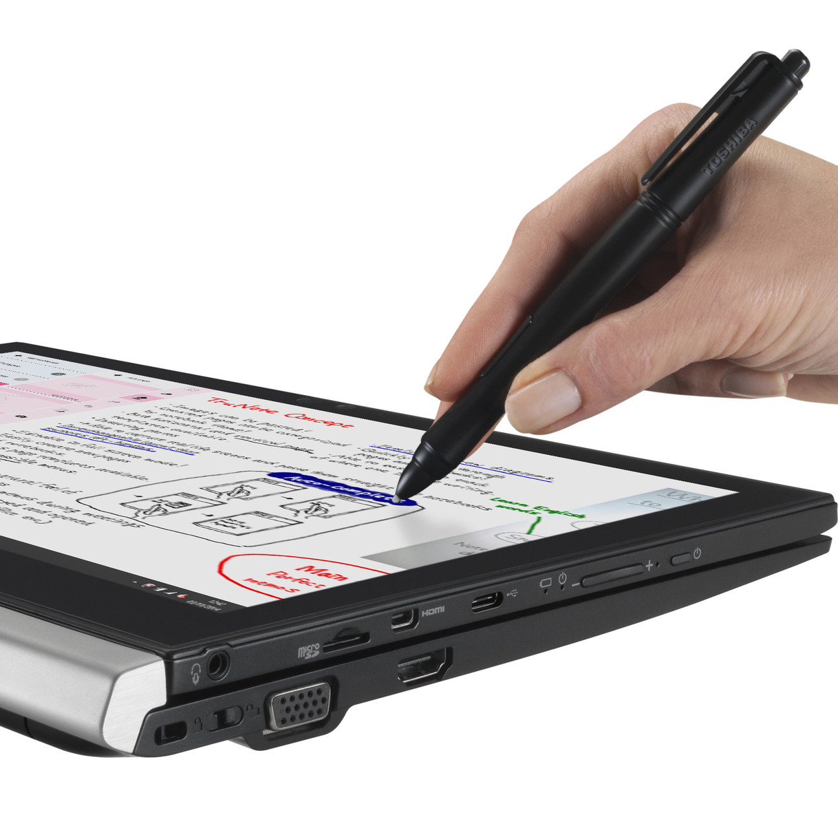 Bei den USB-Schnittstellen findet sich neben 2x USB 3.0 im Keyboard-Dock auch eine moderne und richtungsunabhängig benutzbare USB 3.1 Typ-C Gen.1 Schnittstelle (5 GBit/s). Beide Modelle sind wie die Vorgängergeneration auch wieder mit einem Wacom Digitizer-Stift für die schnelle und präzise Anfertigung und Bearbeitung von Notizen und Skizzen ausgestattet.