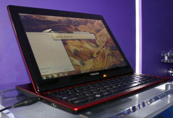 EN→DE Archive.org versionToshiba hasn't officially announced the Toshiba Portege M930, but that didn't stop Microsoft showing off the new sliding laptop on its stand at CES over in Las Vegas. The new mystery model sports a similar design to the Asus Eee Pad Slider released last year and the Sony Vaio laptop concept, also on display at the show.
