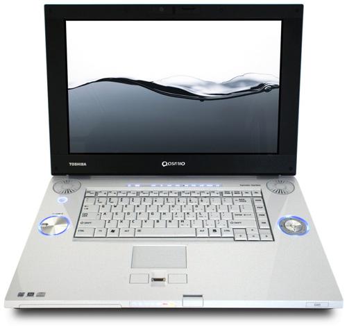 EN→DE Archive.org versionEven though the most interesting new laptops fall into the ultraportable category, a big, over-the-top 17-inch desktop replacement can still be fun. Toshiba's Qosmio line is known for high-end home theater features and high prices, and the latest version, the massive Qosmio G45, is no exception. For $3,199, you get an HD DVD-R drive (a first for a U.S. laptop), a screen that supports full 1080p resolution, twin media control wheels (one for volume, the other for playback functions), and a Harman Kardon speaker system, complete with a subwoofer on the bottom. Does anyone need a laptop this big and expensive? We'd venture a no, but in a world of generic gray boxes, the white, glossy Qosmio G45 stands out as an excellent portable home theater laptop that's just plain fun to use.