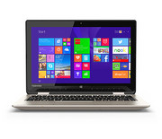 Wird der Bildschirm nach hinten gedreht, so wird die Tastatur automatisch deaktiviert und die automatische Bildschirm-Rotation eingeschaltet. Das Satellite Radius 11 wird durch einen Intel Celeron Prozessor, ein preisgünstiges Dual-Core-Design für Einstiegs-Endverbrauchergeräte, in Kombination mit 2-4 GB angetrieben. Das Gerät ist funktionell, jedoch merklich langsam - auch bei sehr grundlegenden Aufgaben wie dem Öffnen von neuen Browser-Tabs. Es reicht für einfache Dinge wie Tippen, E-Mail und Facebook und Streamen von Videos. Viele andere Aufgaben sind jedoch schleppend. Speicher wird in Form einer 500 GB Festplatte zur Verfügung gestellt. Die Schnittstellenausstattung ist beschränkt, jedoch nicht mehr als bei vielen anderen Ultra-Portablen dieser Tage. Zwei USB-Ports stehen zur Verfügung, ein USB-3.0-Port an der linken Seite und ein USB-2.0-Port an der rechten. Dank HDMI können ein Monitor, ein Fernseher oder ein Projektor angeschlossen werden. Zudem steht ein SDXC-Kartenleser zur Verfügung. Eine einzige 3,5-mm-Headset-Buchse ermöglicht den Anschluss von Kopfhörern mit Mikrofon für Video-Chats. Zudem bietet das Gerät eine Webcam, Bluetooth 4.0 und eingebaute Stereo-Lautsprecher.