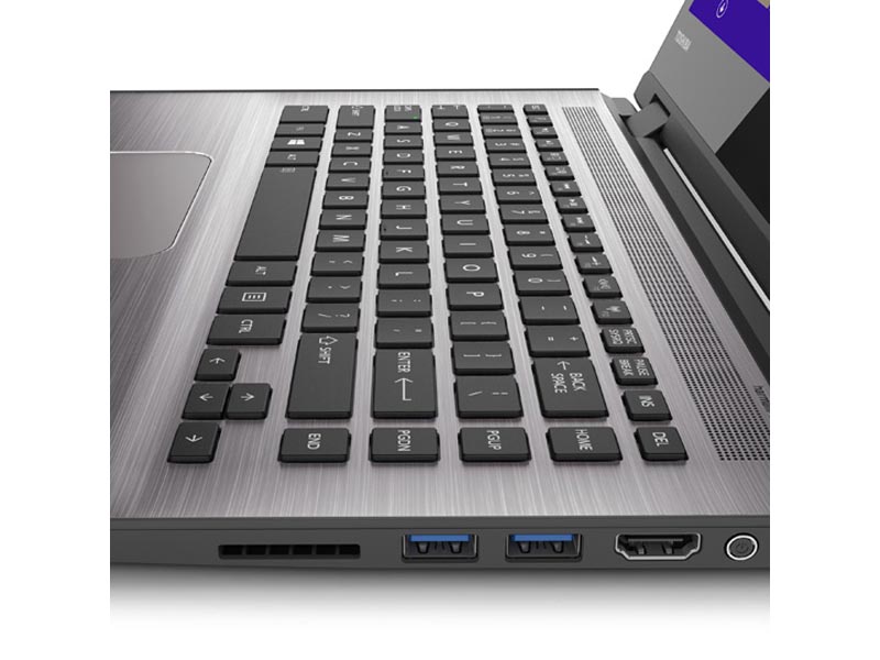 Modell: Das Toshiba Satellite Radius 14 E45W-C4200 ist ein budget-freundlicher Laptop. Eines seiner Schlüssel-Features ist die Fähigkeit die Bildschirmposition soweit zu verändern, bis er sich in ein Tablet verwandet. Die Oberfläche aus grauem, gebürstetem Metall, die schwarze Chiclet-Tastatur und die klaren Linien verleihen dem Gerät ein elegantes Aussehen. Das Chassis ist ausreichend solide für die Portabilität des Windows-8-Systems. Sein 14 Zoll großer HD-TruBrite-Panel verfügt über ein 16:9 Seitenverhältnis und bietet gute Farben und Übersichtlichkeit.