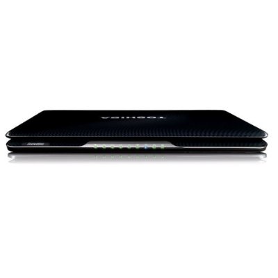 EN→DE Archive.org versionToshiba's Satellite T110 is liable to split opinion right down the middle. A strip of chrome chases round the sides of the chassis, ostentatiously surrounding the status lights on the front edge. It's an eyeful.