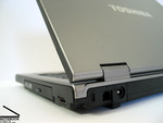 EN→DE Archive.org versionThe Tecra A9 is the latest high-end business notebook that Toshiba offers to compete against 15.4" notebooks such as the Lenovo ThinkPad T61, HP 8510p, and the Dell Latitude D830. Many notebooks in this business category are designed to hold up to the daily rigors of a business environment, and the Tecra A9 is no different. It's claimed to have a durable chassis, protection for the hard drive, as well as a spill resistant keyboard. Let's see how this notebook stands up in our testing. The design of the Tecra A9 is not unlike many other business notebooks; very basic and professional looking. The display cover and keyboard are a simple matte silver color, with no sleek sloping curves, just mildly rounded edges all around. The rest of the notebook is black plastic, leading to a design that would blend in with most Thinkpads or Latitudes around the office. The build quality of the laptop does not feel up to par with most other business grade laptops in the same price range.