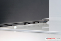 Weitere wichtige Punkte des Portégé Z830 ist das Backlit-Keyboard und die gebotene Schnittstellenausstattung. Neben der RJ-45-Netzwerkbuchse finden sich zwei USB-2.0-Ports mit Sleep-and-Charge-Funktion, ein HDMI- sowie VGA-Ausgang, ein USB-3.0-Port und natürlich ein Kartenleser sowie die Audioanschlüsse für Kopfhörer und Mikrofon.