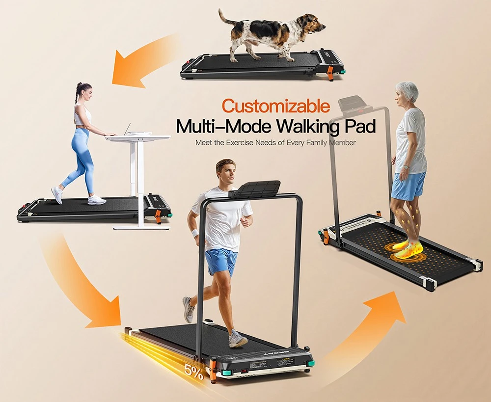 Aber das Akluer 520A-B kann noch mehr. Es bietet auch ein integriertes Fußmassagegerät. Dies sorgt für Entspannung, indem die Füße durch gezielte Vibrationen massiert werden. Insgesamt stehen vier verschiedene Modi zur Verfügung. Neben Massage sind Gehen und Laufen möglich. Dazu kommt ein spezieller Haustierfreundlich-Modus, auf dem beispielsweise Hunde ihre nötige Bewegung bekommen können.