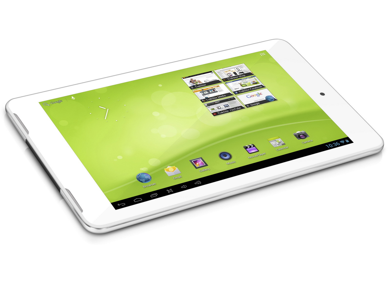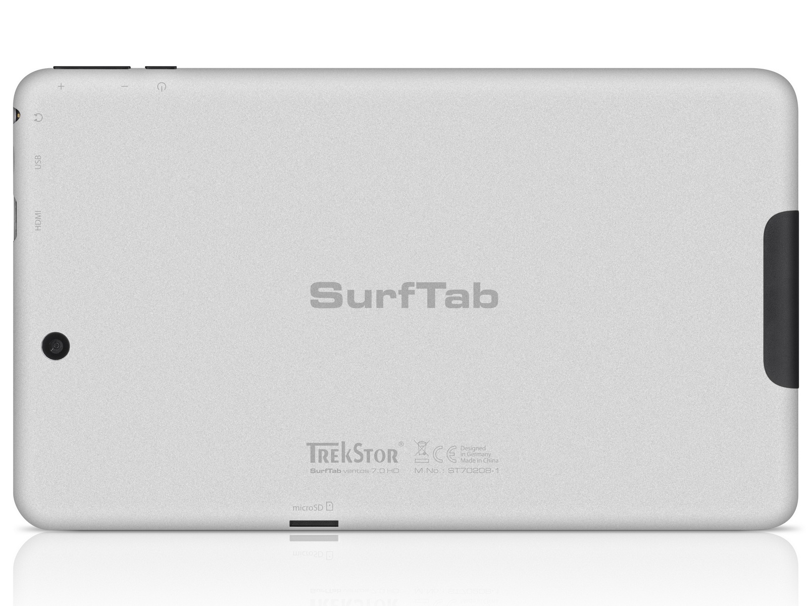 Für Videotelefonie und Schnappschüsse sind vorne eine 0,3-MP-Kamera und ein Mikrofon integriert, an der Rückseite befindet sich eine Kamera mit 2 Megapixeln. Als Abmessungen für das Alu-Kunstoffgehäuse nennt TrekStor 191 x 113 x 7,6 Millimeter. Eine Angabe zur Kapazität des Lithium-Polymer-Akkus im SurfTab ventos 7.0 HD macht TrekStor nicht. Gemäß Datenblatt beträgt die Batterielaufzeit mit aktiviertem WLAN rund 5 Stunden.