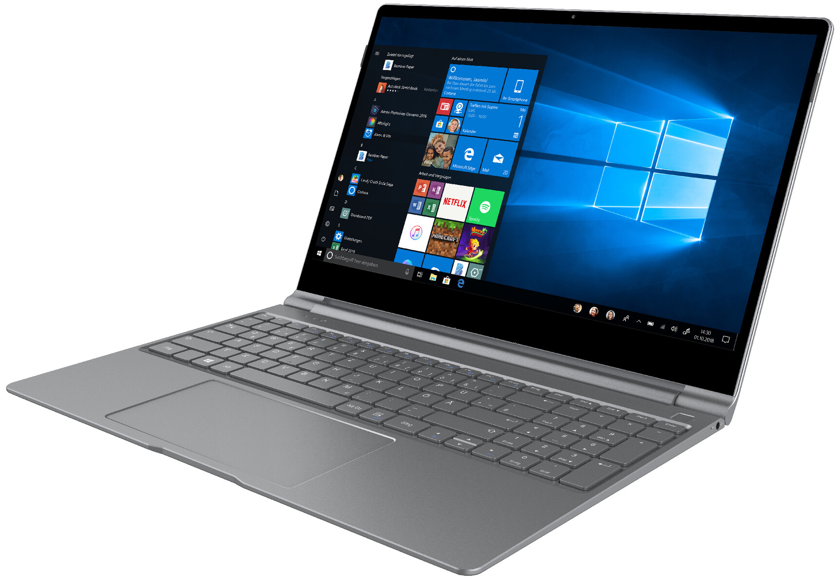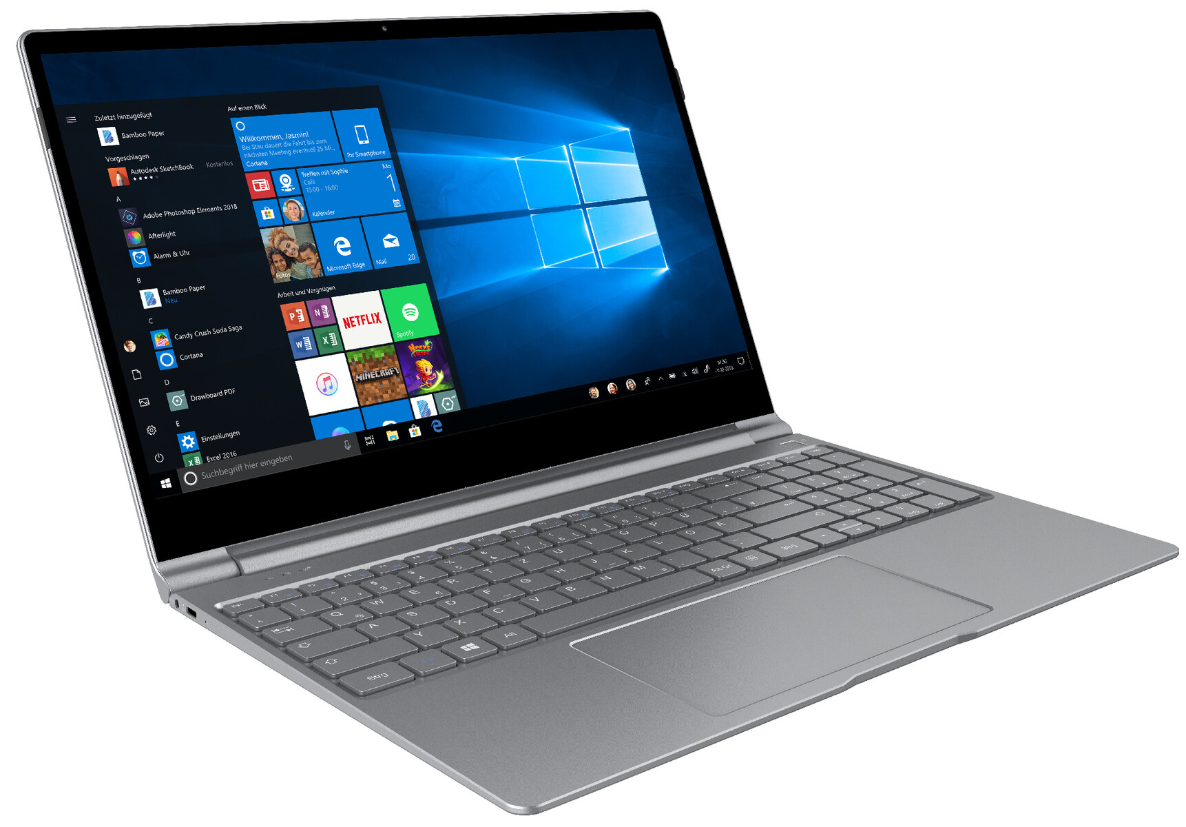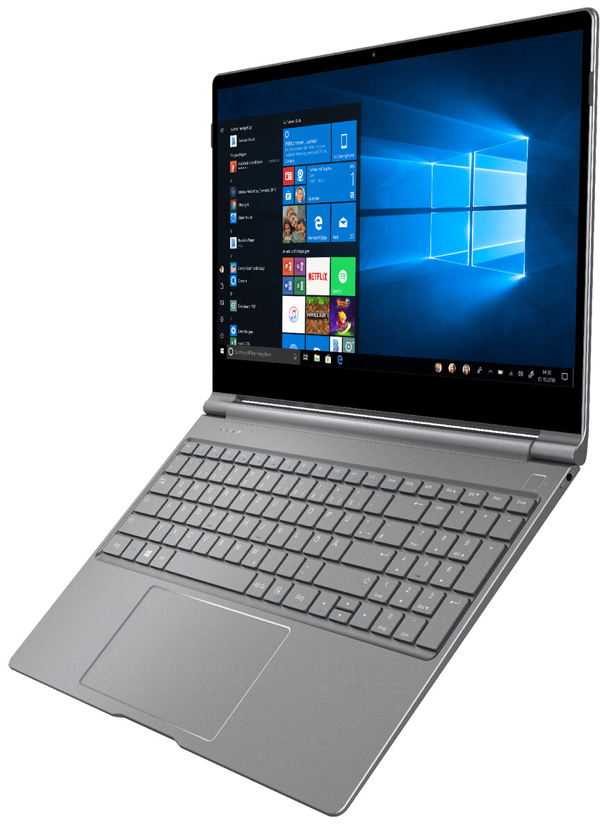 Das Trekstor Primebook P15 präsentiert sich als 15,6-Zoll-Notebook im hochwertigen grauen Aluminiumgehäuse, das sich mit einem geringen Gesamtgewicht von rund 1,6 Kilogramm und einer Bauhöhe von 13,5 Millimetern für den mobilen digitalen Alltag empfiehlt. Ausgestattet ist das Primebook P15 mit einem Full- HD-IPS-Display im 16:9-Format, das eine Auflösung von 1.920 x 1.080 Pixel bietet.