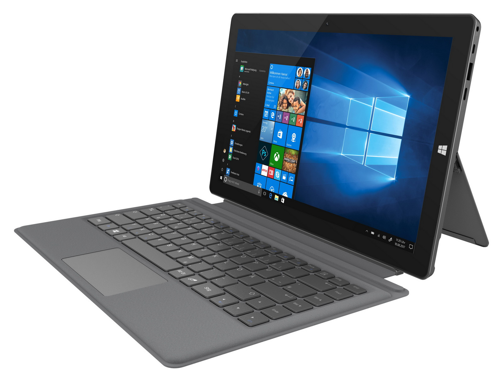 Bis auf die CPUs und das Primecover+ unterscheiden sich die beiden Trekstor-Detachables bei der übrigen Ausstattung nicht. Auch beim Primetab T13B-CO ist das Primecover inklusive. Es kommt im grauen Stoffbezug, der das Display beim Transport schützt. Die magnetische Tastatur mit Anstellwinkel ermöglicht eine komfortable Eingabeposition zum Tippen. Im Gegensatz zum Primecover+, das dem Primetab T13B-PO beiliegt, wird auf einen Fingerabdrucksensor und beleuchtete Tasten verzichtet.