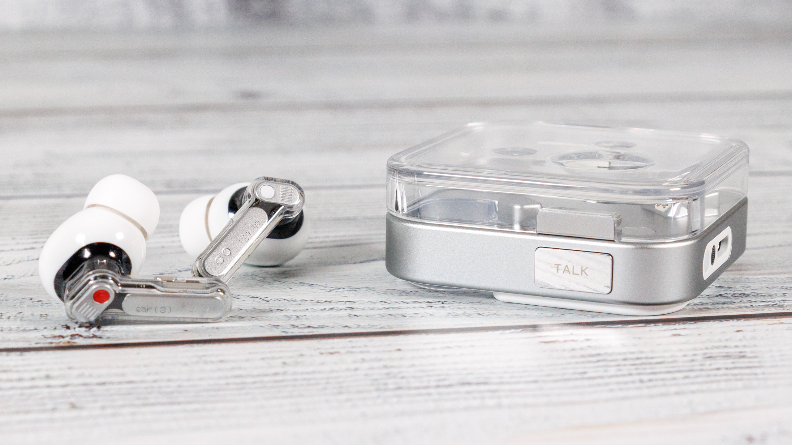 Die Nothing Ear (3) sind aus Kunststoff gefertigt und in den Farben Schwarz und Weiß erhältlich. Der untere Teil des Ladecases besteht aus Aluminium und beherbergt neben den zusätzlichen Mikrofonen auch eine Sprechtaste. Verarbeitung und Materialanmutungen sind gut, was auch auf die Aluminiumbasis zurückzuführen ist. Sowohl die Ohrhörer als auch das Ladeetui sind gemäß IP54 gegen Staub und Wasser geschützt.