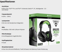 Bei seinem Stealth 300 hat Turtle Beach laut eigenem Bekunden einige Features des Stealth 600 übernommen. Hierzu zählen brillenfreundliche Memory-Foam-Ohrpolser (ProSpecs), 50-mm-Lautsprecher, ein hochklappbares Mikrofon (Kugelcharakteristik) sowie ein Lithium-Polymer-Akku mit einer Kapazität von 900 mAh. Damit soll der Turtle Beach Stealth 300 Gaming-Headset eine Akkulaufzeit von mehr als 30 Stunden erreichen.