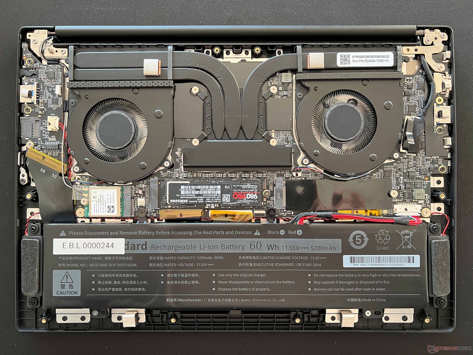 Die Akkukapazität liegt bei 60 Wh und damit deutlich unter dem InfinityBook bzw. Vision 14 mit dem großen 99-Wh-Akku. Die Laufzeiten sind aber dennoch sehr gut und in unseren Tests mit 150 cd/m² (entspricht beim Testgerät 46 % der maximalen Helligkeit) erreichen wir im WLAN-Test mit 60 Hz 10:20 Stunden und mit 120 Hz noch 8:49 Stunden. Bei der vollen Helligkeit macht die Frequenz allerdings keinen Unterschied mehr, denn hier lief der WLAN-Test jeweils 6:36 Stunden. Im Videotest liegt die Laufzeit bei rund 10 Stunden.