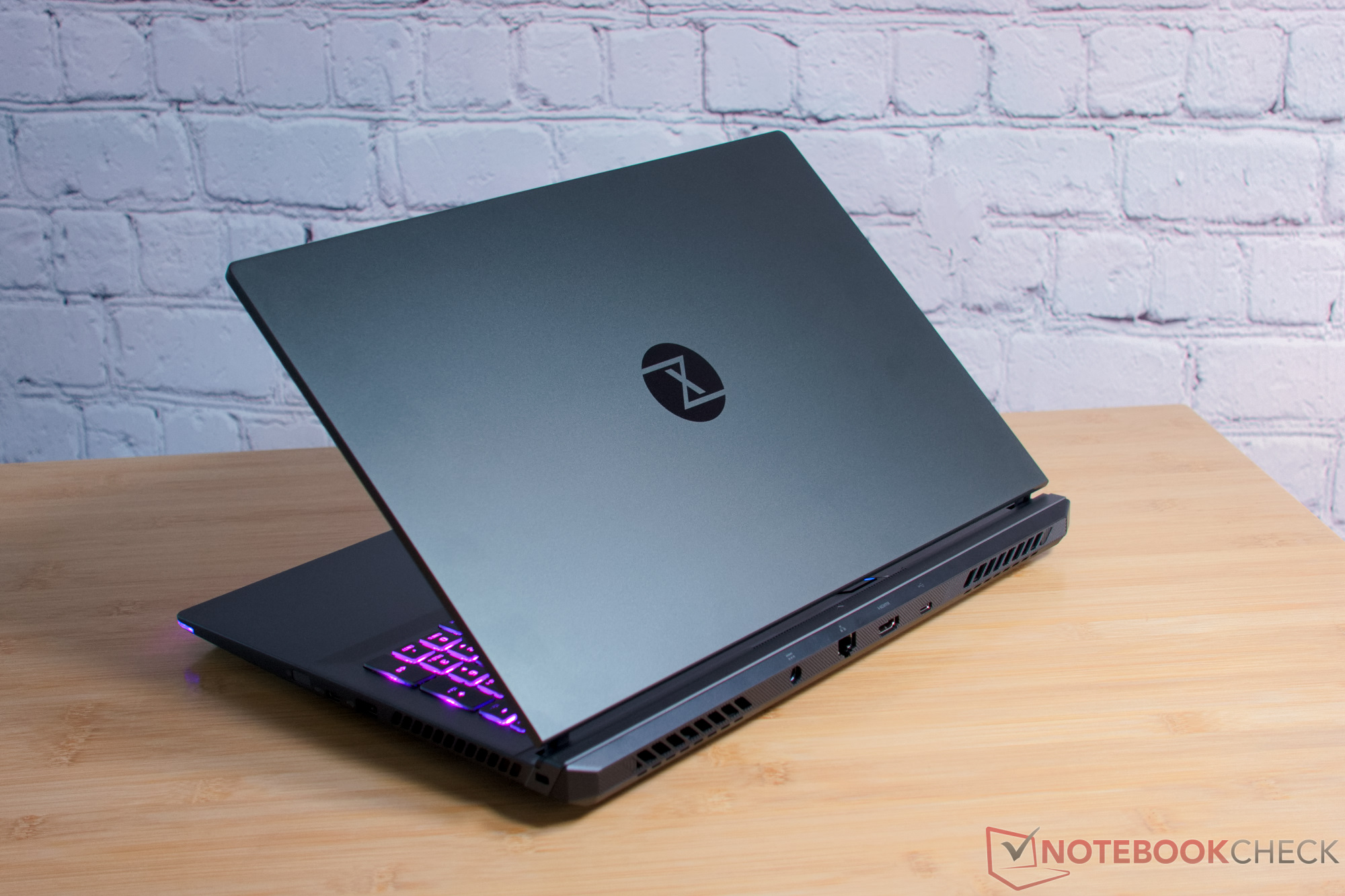 Erfreulich ist, dass ab Werk keine Sticker die Aluminiumoberflächen verunstalten. Kritikpunkte beim Gehäuse sehen wir leider auch. Das Display lässt sich nicht sonderlich weit öffnen. Bei rund 135° ist Schluss. Die Übergänge der Lichtleiste an der Front sind nicht ganz glatt und die Leiste wirkt insgesamt sehr ungleichmäßig beleuchtet. Beim Aufschrauben des Laptops müssen wir zudem feststellen, dass auch größere Objekte durch die Display-Scharniere in den Laptop eindringen können. Wir haben dies mit Papierröllchen getestet. Kleine Schrauben oder Metallteile könnten für deutliche Schäden im Laptop sorgen.