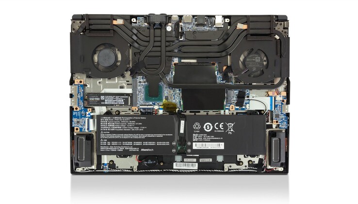 Im Topmodell arbeitet darüber hinaus eine Nvidia GeForce RTX 4090 Laptop-GPU mit 16 GB GDDR6-Grafikspeicher, die mit einer TGP von 150 Watt plus 25 Watt Dynamic Boost betrieben wird. Das massive Kühlsystem mit zwei Lüftern verspricht eine erstklassige Leistung, wer die volle Performance unter Dauerlast und bei geringerer Lautstärke abrufen möchte, kann die optionale Tuxedo Aquaris Wasserkühlung anschließen.