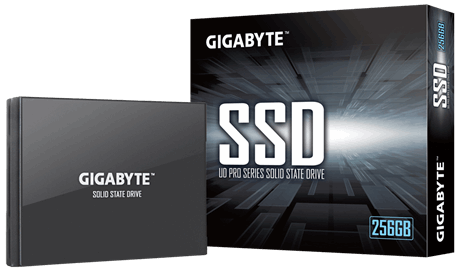 Mit der UD Pro bietet Gigabyte eine 2,5-Zoll-SSD an, die je nach Modellvariante 256 respektive 512 Gigabyte speichern kann. Unabhängig von der Speicherkapazität erfolgt die Anbindung der Speicher über SATA.